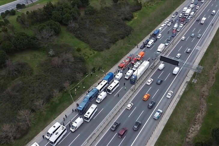 TEM Otoyolu Edirne istikameti İkitelli mevkisinde 4 cezaevi nakil aracının karıştığı zincirleme trafik kazası meydana geldi.
