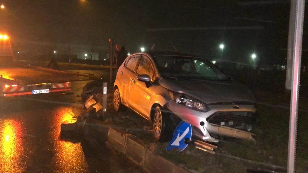 Kaza, gece saatlerinde Hatip Mahallesi Ali Osman Çelebi Bulvarı üzerinde (Süleymanpaşa yolu 3. kilometre) meydana geldi. Süleymanpaşa istikametine seyreden A.Ö. idaresindeki 59 AJD 239 plakalı otomobil, dönel kavşağa girerken sürücüsünün direksiyon hakimiyetini kaybetmesi sonucu tabelalara çarparak refüje çıktı.Sürücü belgesine el konulduKaza sonrası olay yerine polis ve ambulans ekibi sevk edildi. Sürücü A.Ö., sağlık ekiplerinin ilk yardım talebini reddetti. Trafik polisi tarafından yapılan kontrollerde sürücü A.Ö.’nün 2.02 promil alkollü olduğu tespit edildi. Yasal sınırın üzerinde alkollü olduğu ortaya çıkan A.Ö.’nün sürücü belgesine 6 ay geçici süreyle el konuldu.Trafik polisi yaralanmaktan kurtardıİşlemleri için karakola gitmek üzereyken dengesini kaybeden alkollü sürücüyü, trafik polisi Ahmet Ertaş dikkati sayesinde kolundan tutarak yaralanmaktan kurtardı. Ayakta durmakta güçlük çeken A.Ö., trafik polisi Ahmet Ertaş’a teşekkür etti.