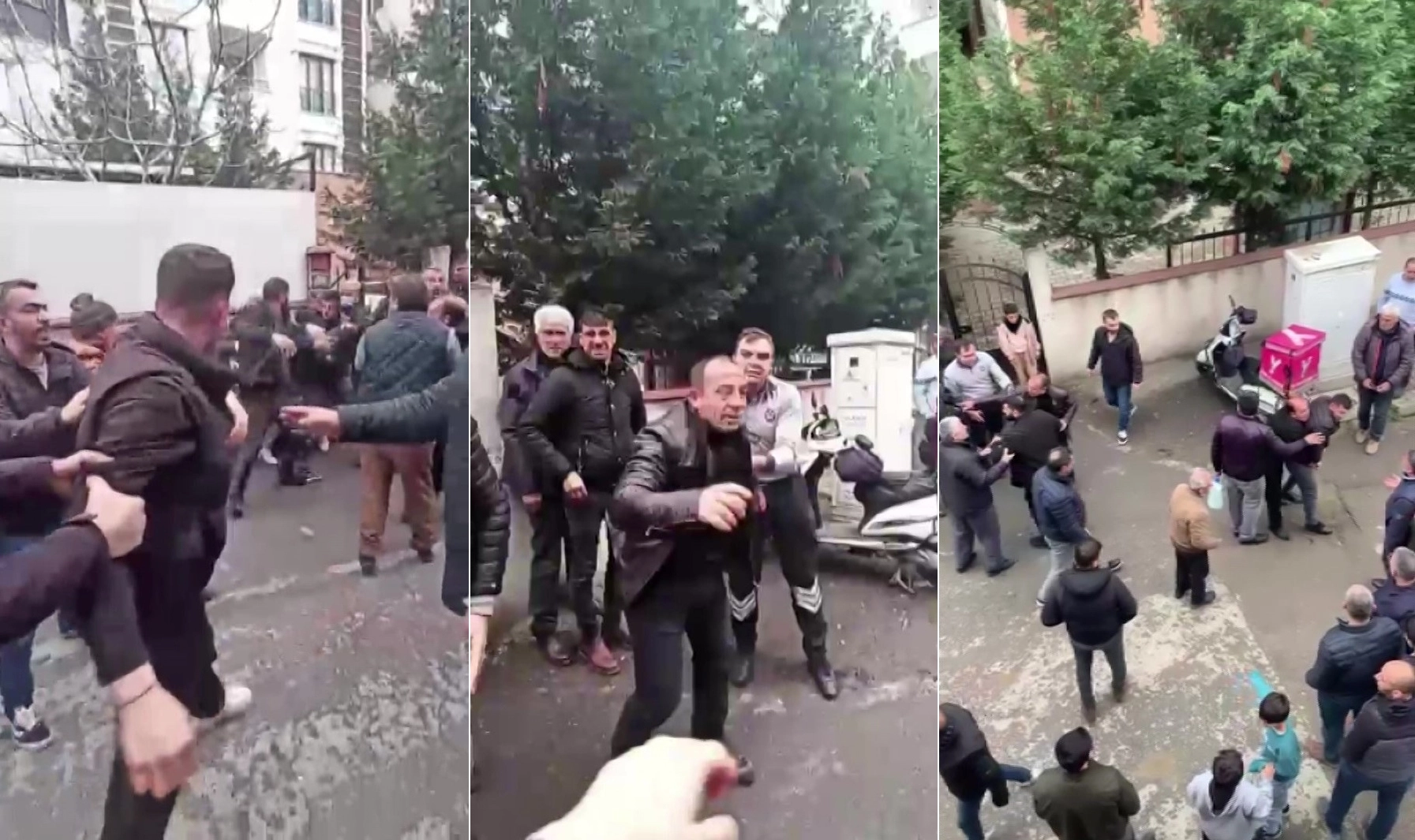 Pendik’te camiden çıkan cemaat ile cami önünde ara gaz vererek gürültü yapan motokurye arasında tartışma çıktı. Tartışmanın büyümesiyle taraflar arasında çıkan kavgada tekmeler ve yumruklar havada uçuştu. O anlar cep telefonu kamerasına yansıdı.Olay, Pendik’te Kavakpınar Mahallesi’nde dün yaşandı. İddiaya göre Cuma namazından çıkan cemaat ile, cami önünde motosikletiyle ara gaz vererek gürültü çıkaran motokurye arasında sözlü tartışma yaşandı. Tartışmanın büyümesiyle cemaatte bulunan vatandaşlar ile motokurye birbirlerine girdi. Tekme ve yumrukların havada uçuştuğu kavgayı kimileri ayırmaya çalışırken kimisi de izledi. Kavga, çevredekilerin araya girmesiyle sonlandı. Yaşanan o anlar vatandaşın cep telefonu kamerasına yansıdı.