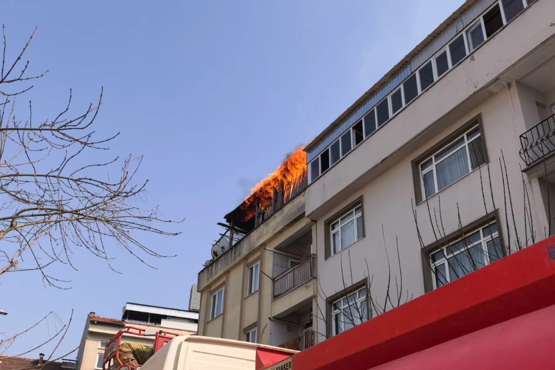 Hamidiye Mahallesi Suyolu Cami Sokak'taki 4 katlı binanın teras katında henüz bilinmeyen nedenle yangın çıktı.