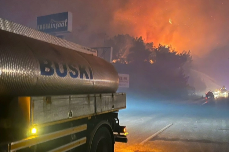 "Bursa Büyükşehir Belediyesi İtfaiyemiz ve iştiraklerimize bağlı ekiplerimiz ile İzmir'de süren yangınla mücadeleye desteğimizi sürdürüyoruz.Yangının bir an önce kontrol altına alınmasını temenni ediyor; yangından etkilenen tüm vatandaşlarımıza geçmiş olsun dileklerimizi iletiyoruz.Söndürme çalışmalarına katılan tüm ekiplere kolaylık diliyoruz."