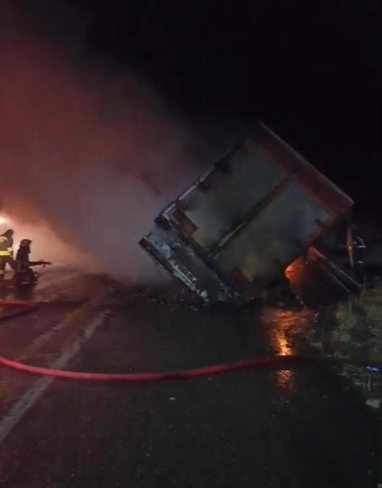 Edinilen bilgilere göre, dün gece saatlerinde ilçenin Oğlaklı Mahallesi'nde sürücüsünün direksiyon hakimiyetini kaybettiği tır, yol kenarına devrilerek alev aldı. Sürücü, hafif şekilde yaralandı.İhbar üzerine olay yerine itfaiye, jandarma ve sağlık ekibi sevk edildi. Yangın, itfaiye erlerinin müdahalesiyle söndürüldü.Kazayla ilgili inceleme başlatıldı.