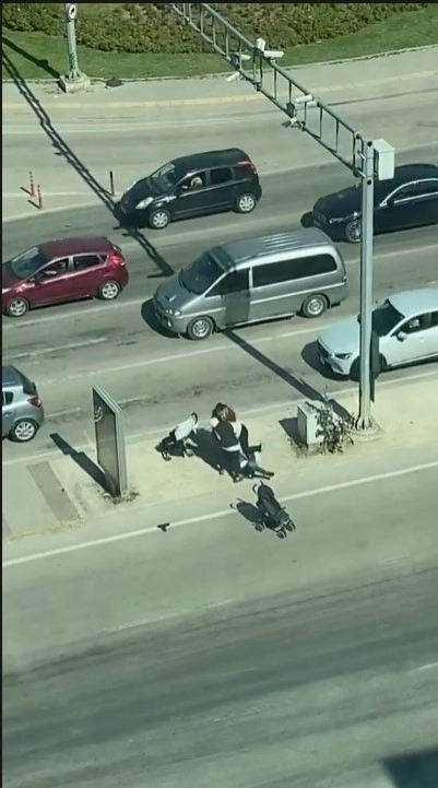 Edinilen bilgiye göre, Nilüfer Beşevler kavşağında orta refüjde birbirine giren 2 dilenci grubun tekme tokat kavgası bir vatandaş tarafından saniye saniye kaydedildi. Kendilerini acındırıp para koparmak için yanlarında bebek arabası gezdiren iki farklı dilenci grubu arasında mıntıka tartışması yaşanınca taraflar birbirine girdi. Tekme tokat kavga sırasında bebek arabalarından biri orta refüjden yola inip ilerlemeye başladı. Üzeri açılan bebek arabasında bebeğin olmadığı dilencilerin istismar yoluyla vatandaşları nasıl kandırdıkları bir kez daha gözler önüne serildi.