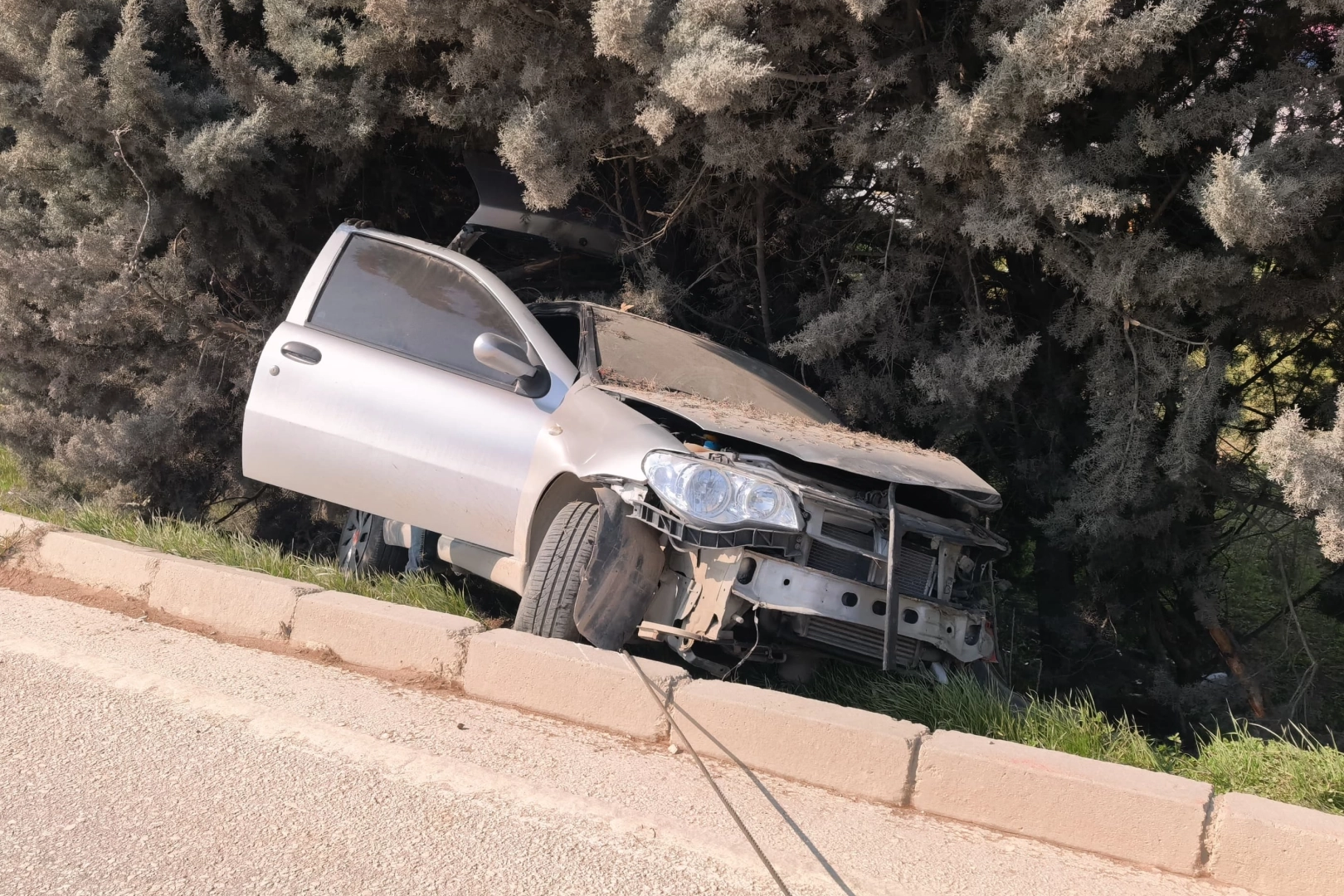Bursa’nın İnegöl ilçesinde kontrolden çıkan otomobil ağaçlık alana savruldu. Meydana gelen kazada sürücü yaralandı.
