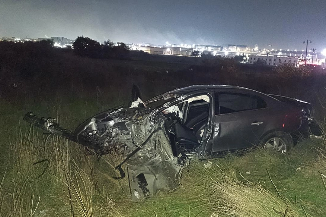 A.K. idaresindeki otomobil, Otoban Bulvarı’nda önce bariyere çarptı, ardından şarampole devrildi.