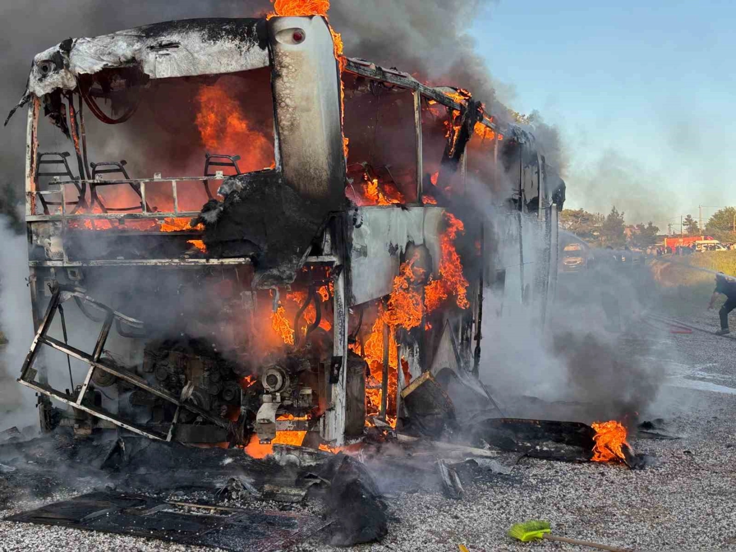 Olay, Muğla’nın Marmaris-Datça Karayolu Mezargediği mevkiinde saat 19.00 sıralarında meydana geldi. Edinilen bilgiye göre, seyir halindeki bir tur otobüsü, henüz bilinmeyen bir nedenle yanmaya başladı. Dumanları fark eden şoför aracı durdururken, yolcular ve sürücü hızla otobüsten indi. Kısa sürede alev topuna dönen otobüs çevrede kısa süreli paniğe neden oldu. İhbar üzerine bölgeye sevk edilen itfaiye ve orman ekipleri yangına müdahale etti. Ekiplerin hızlı müdahalesi sayesinde alevler çevredeki ormanlık alana sıçramadan kontrol altına alınarak söndürüldü. Yangında can kaybı ve yaralanma yaşanmazken, otobüs kullanılamaz hale geldi. Olayla ilgili inceleme başlatıldı.
