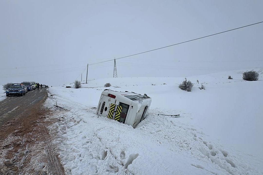 Kazada, ilk belirlemelere göre sürücü ile araçtaki 9 öğrenci yaralandı.