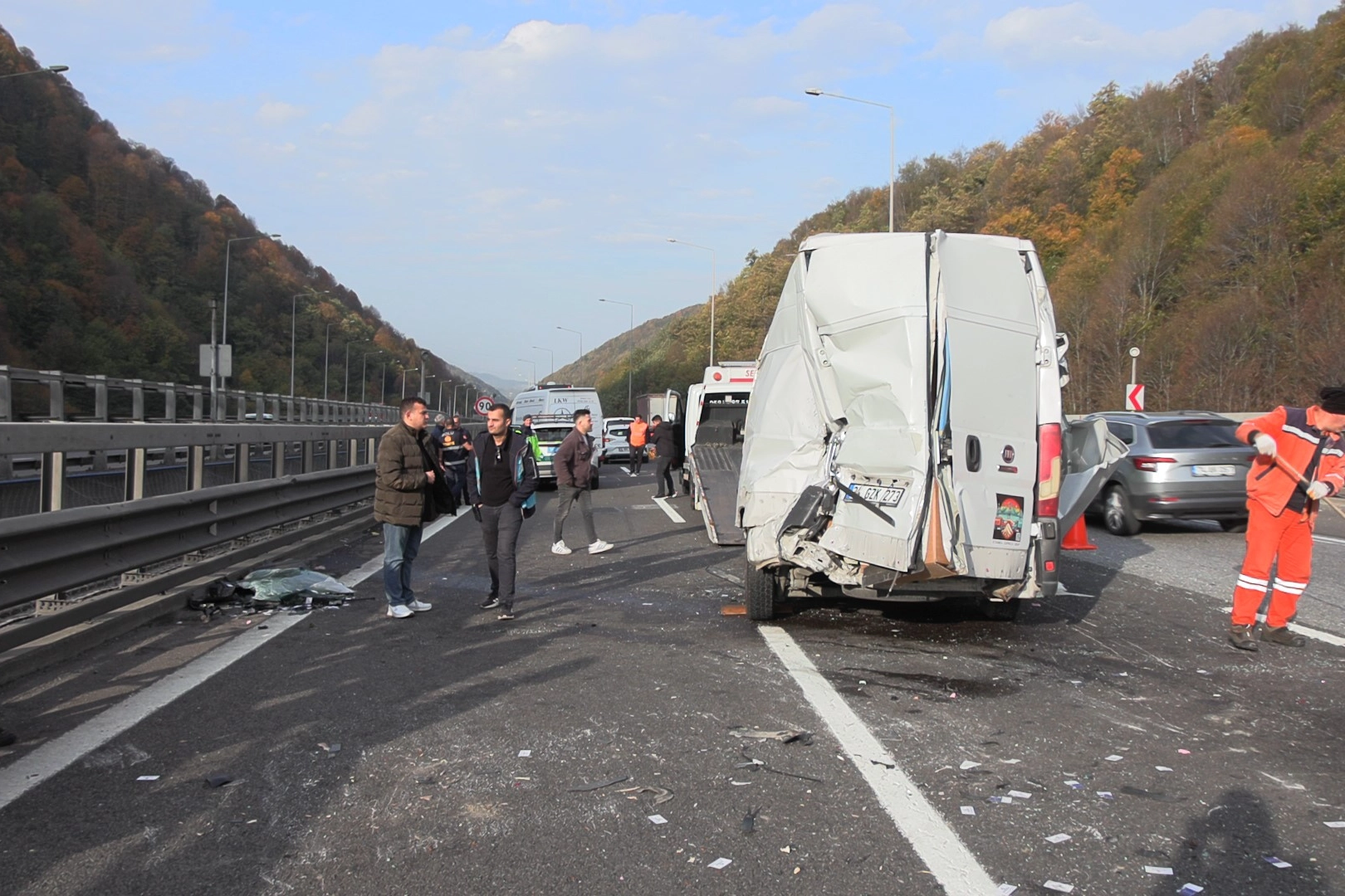 Kaza, TEM Otoyolu'nun Bolu Dağı Tüneli çıkışında 2. Viyadük mevkiinde meydana geldi. İstanbul istikametinde seyreden F.K. idaresindeki 80 DB 789 plakalı tır, C.A. yönetimindeki 44 AHG 684 plakalı yolcu otobüsü ile çarpıştı. Aynı istikamette seyreden A.Y. hakimiyetindeki 34 GZK 273 plakalı panelvan da kazaya karıştı. Meydana gelen kazada panelvan otoyolda devrildi. Yan yatan araç içerisindeki sürücü A.Y. yaralandı. 112 Acil Çağrı Merkezi'ne yapılan ihbar üzerine bölgeye sağlık, jandarma ve itfaiye ekipleri sevk edildi. Kazada yaralanan sürücü sağlık ekiplerinin ilk müdahalesinin ardından hastaneye kaldırıldı. Bölgede trafik tek şeritten kontrollü olarak sağlandı. Kazayla ilgili inceleme başlatıldı.