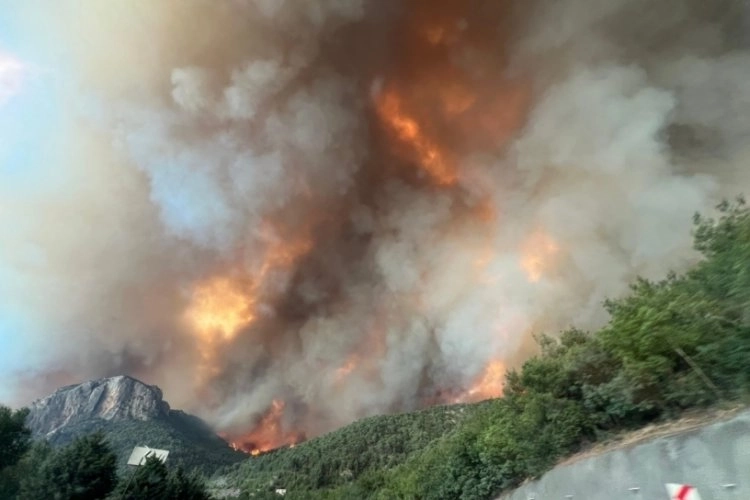 Alevler bölgedeki Medetli, Üyük, Borçak, Kazancı, Kızılöz ve Ciciler köylerini tehdit ederken, ekipler yangının önünü kesmek için setler oluşturuyorlar.