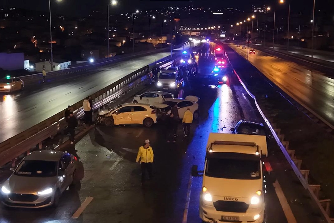 Yağmur nedeniyle kayganlaşan yolda 8 aracın karıştığı zincirleme kaza meydana geldi.