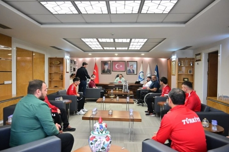 Katıldıkları uluslararası turnuvalarda ülkemizi ve Yıldırımı gururlandıran Toprak Aras, Yusuf İslam Kara, Batın Naniş ve Enes Gezer'i makamında ağırlayan Yıldırım Belediye Başkanı Oktay Yılmaz, başarılı sporcuları tebrik etti. Yıldırım'ın spor kenti kimliğini güçlendirmek için çalıştıklarını vurgulayan Başkan Oktay Yılmaz; "Gerek tesisleşme hamlemiz gerekse de spor kurslarımız ve eğitimlerimizle Yıldırım'ı adeta bir spor kentine çevirdik. Hamdolsun bu yatırımlarımız da meyvelerini veriyor. Sporcularımız katıldıkları ulusal ve uluslararası turnuvalarda ülkemizi ve bizleri gururlandıran önemli başarılara imza atıyorlar. Bu başarılar eminim ki, çocuklarımıza ve gençlerimize ilham olacak bir yol açacaktır. Ben tüm sporcularımızı tebrik ediyor ve başarılarının devamını diliyorum. Spora ve sporcuya olan desteğimiz bundan sonra da artarak devam edecek ifadelerini kullandı.