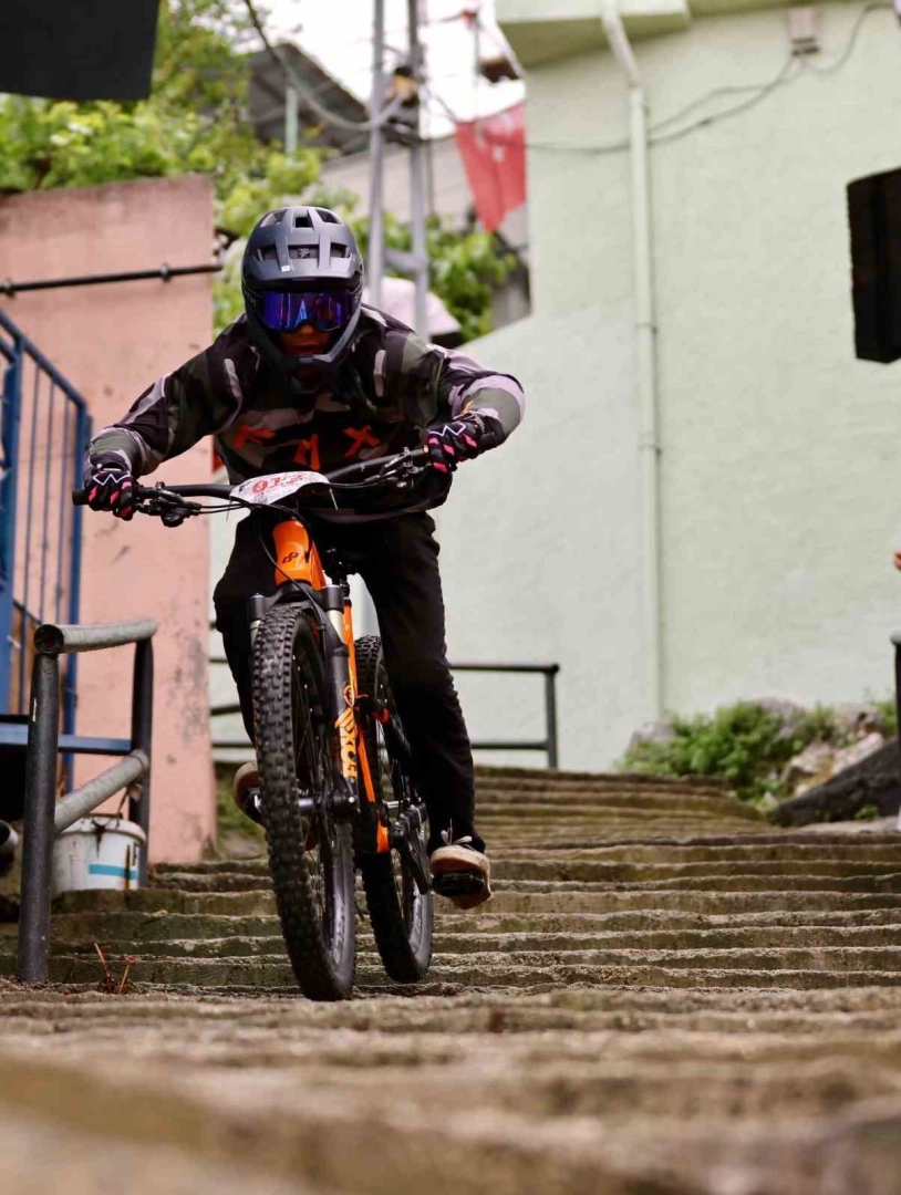 Bursa Valiliği ve Bursa Büyükşehir Belediyesi öncülüğünde Gençlik ve Spor İl Müdürlüğü, İl Milli Eğitim Müdürlüğü, Bursa Kent Konseyi ve Bursa Büyükşehir Belediyespor Kulübü iş birliğinde düzenlenen Bursa Uluslararası Spor Festivali, 17 ilçede devam eden spor etkinlikleriyle dolu dolu geçiyor. Doğa harikası parkurlara sahip olan Bursa, festival kapsamında yapılan Türkiye’nin ilk extrem bisiklet yarışı ‘Urban Downhill Yarışı’na (Şehir içi iniş) ev sahipliği yaptı. Mollafenari Mahallesi’nden başlayarak Tarihi Pınarbaşı Parkı’nda sona eren zorlu parkurda yarışmacılar, zamana karşı mücadele etti. Dar sokakları, dik merdivenleri ve keskin virajları hız kesmeden inen sporcular, Bursalılara adrenalin dolu anlar yaşattı. Merdivenlerden ve virajlardan teknik beceri ve cesaretlerini kullanarak ustalıkla dönen sporcular, izleyenlere unutulmaz anlar yaşattı. Gün boyu Bursa’nın tarihi sokaklarında tarih yazan bisikletçiler, yarışma sonunda Bursalılardan alkış aldı.