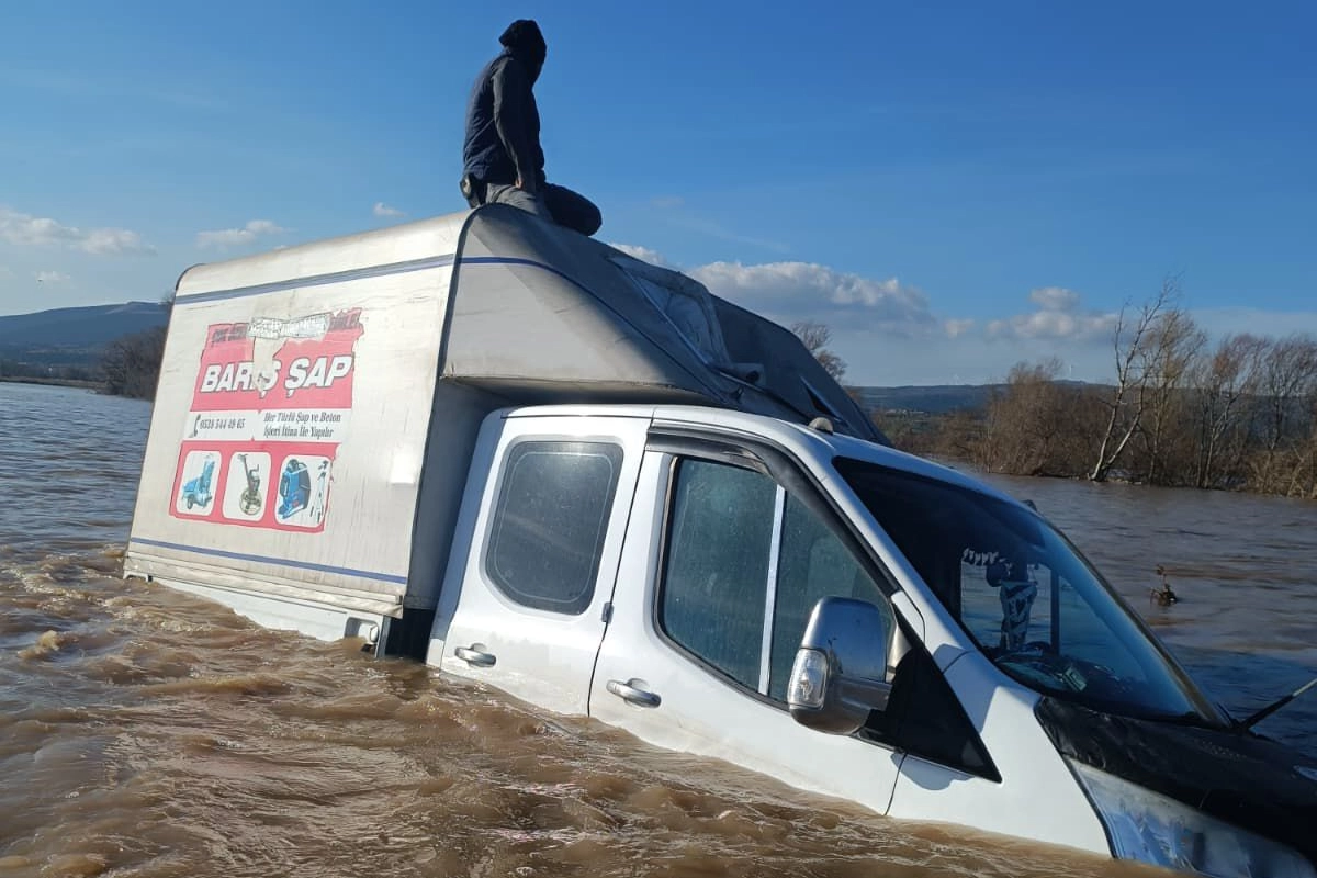Söz konusu bölgede bir kamyonetin üzerinde 2 kişinin mahsur kalması üzerine, olay yerine AFAD, itfaiye ve jandarma ekipleri sevk edildi.