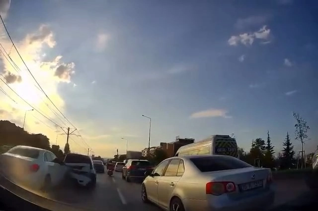 Olay, merkez Nilüfer ilçesi İzmir yolunda meydana geldi. Trafiğin yoğun olduğu anlarda, kayda alınan görüntüler herkesin yüreğini ağzına getirdi. Arkadan gelen aracın durmayacağını fark eden sürücü, kendini sağa doğru attı. O esnada gelen otomobil önüne kattığı araçları, sürüklemeye başladı. Kameralarda 5-6 aracı hurdaya döndüğü kazada, bir motosikletli de ölümden döndü. Araçların altında kalmaktan son anda kurtulan motosikletli, kendini yolun ortasında oturur vaziyette buldu. Yaşanan kazanın ardından olay yeri savaş alanı gibi kayda alınırken, herkes yardıma koştu.