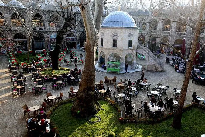 Bursa’nın tarihi simgelerinden Koza Han’da önemli bir uygulama başlatıldı. Hanın avlusu, uzun süredir kafe işletmecilerine ait masa, sandalye ve şemsiyelerle kaplanmıştı. Fahiş fiyatlar ve kaçak eklentiler nedeniyle tepki çeken durum son buluyor.