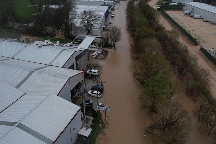 Bursa'da dün akşamdan beri aralıksız yağan yağmur ile birlikte, toprak kaymaları ve taşmalar meydana geldi. Bursa'da Nilüfer ilçesine bağlı Ürünlü Mahallesi'nde bulunan dere, yoğun yağışın etkisiyle taştı. Yollar sular altında kalırken, fabrika bahçelerinde ise araçlar mahsur kaldı. AFAD, Bursa Büyükşehir Belediyesi Afet Daire Başkanlığı ekipleri ve itfaiye olay yerine gelirken, trafik ekipleri de yolu araç trafiğine kapattı. Meteorolojik tahminlere göre Bursa genelinde yağışların hafta boyunca devam etmesi bekleniyor. Yetkililer, dere yataklarına yakın bölgelerde yaşayan vatandaşları dikkatli olmaları konusunda uyardı.