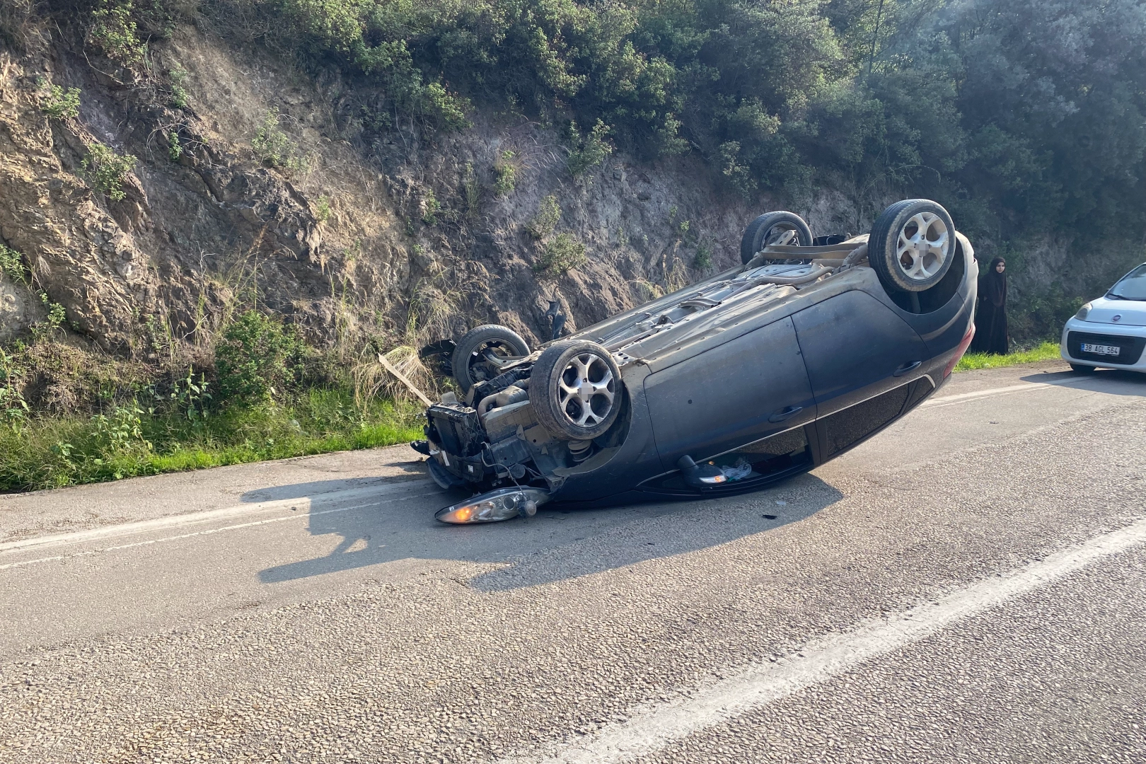 Edinilen bilgilere göre, Tirilye yönünden Mudanya istikametine seyir halinde olan 59 RS 954 plakalı otomobilin sürücüsü İsmet Y. (68), virajlı yolda zeminin kaygan olması sebebiyle direksiyon hâkimiyetini kaybetti. Kontrolden çıkan araç, yol kenarındaki kayalara çarparak ters döndü. Çarpmanın şiddetiyle büyük hasar alan araçta sürücü ve yanındaki yolcu sıkıştı. Emniyet kemerleri takılı olduğu için ciddi bir yaralanma yaşanmazken, ikiliye ilk müdahaleyi yoldan geçen bir vatandaş yaptı. Yardımcı olan vatandaşın desteğiyle araçtan çıkarılan sürücü ve yolcunun, sağlık ekiplerinin kontrolünün ardından durumlarının iyi olduğu belirlendi. Olay yerine kısa sürede jandarma ve polis ekipleri sevk edildi. Ekipler, kazayla ilgili inceleme başlatırken ters dönen araç çekici yardımıyla bulunduğu yerden kaldırıldı. Kazayla ilgili tahkikat devam ediyor.