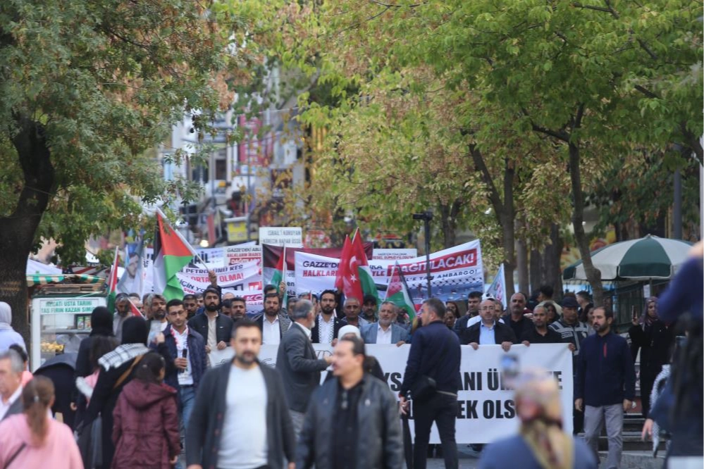 Ulu Camii önünden başlayan yürüyüş Şehreküstü Meydanı'nda sona erdi. Yürüyüş boyunca vatandaşlar, "Küresel Sümud Filosu onurumuzdur" yazılı pankartlar taşıyarak "Çok yaşa Filistin" sloganları attı. Grup adına yapılan açıklamada, "3 gün sonra 3. yılına girecek olan Gazze katliamı halen bu saatlerde dahi devam etmekte. Bundan 1380 yıl önce Kerbela hadisesinde peygamber evlatları şehit edildi. Bizler Kerbela dediğimizde içimiz acıyor ve aklımıza zulüm geliyor, bir avuç Müslüman'ın ekmeye, suya muhtaç bir şekilde şehit edilişi geliyor aklımıza. Sizi temin ederim ki Gazze katliamı devam ettiği müddetçe bizim neslimiz bizden sonra gelen evlatlarımız, Gazze katliamı ile ilgili bir kaynak okuduğunda bize lanetler edecek, hiç kimse mi yoktu diyecekler. 2 milyar Müslüman ne yapıyordu diyecekler. Kendimize bakalım bizden sonraki nesil bizi lanetle mi yoksa rahmetle mi yadetsinler" ifadelerinde bulundu.