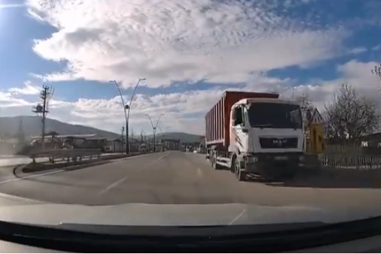 Üçevler Mahallesi Çalı yolu üzerinde trafikte büyük tehlike yaşandı. Ters şeritten son sürat ilerleyen bir kamyon, başka bir aracın araç kamerası tarafından saniye saniye görüntülendi. Görüntülerde, kamyonun hızla karşı şeritten geldiği karşı şeritten gelen sürücülerin manevra yapmak zorunda kaldığı görülüyor. O anlar, trafikte seyreden vatandaşların yüreklerini ağızlarına getirdi. Araç kamerasına yansıyan görüntüler sosyal medyada hızla yayıldı ve büyük tepki topladı. Vatandaşlar, bu tür tehlikeli sürüşlerin önlenmesi için denetimlerin artırılmasını talep etti. Polis ekiplerinin olayla ilgili inceleme başlattığı, kamyon sürücüsünün kimliğinin tespit edilmesi için çalışmaların sürdüğü öğrenildi.