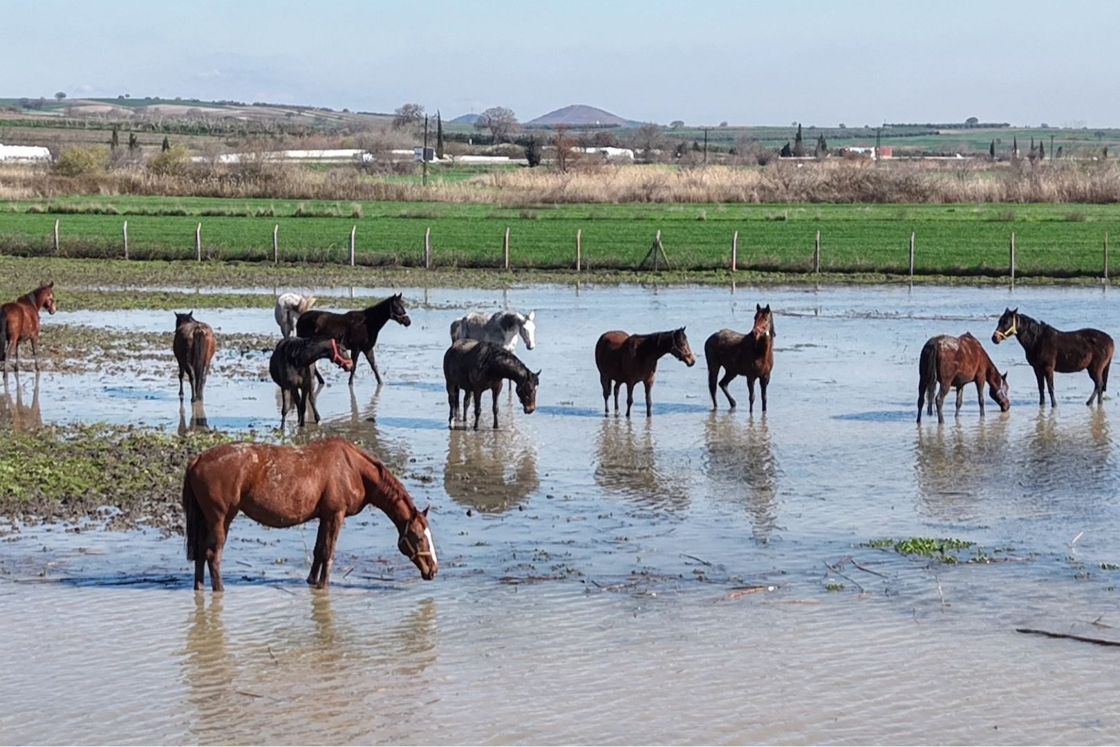 Uluabat Gölü, Bursa-İzmir kara yolunun kıyısına kadar gelirken bölgede bulunan milyonluk yarış atlarının bulunduğu tarlalar da su altında kaldı. Arap ve İngiliz yarış atları, su içinde gezinirken drone ile görüntülendi. Milyonluk tayların annesi olan damızlık atların büyük kısmının gebe olması da dikkat çekti. At çiftliğinin çalışanı Paşa Şıkıyev, 2017'den bu yana Karacabey'de tavlada çalıştığını belirterek, "Göl suları ilk kez buraya kadar geldi. Bu şekilde hiç görmemiştim. Atları sürekli ahırda tutamayız mecbur gezindikleri alana çıkardık. Orası da su altında ama yapacak bir şey yok bir süre böyle idare edeceğiz" dedi.
