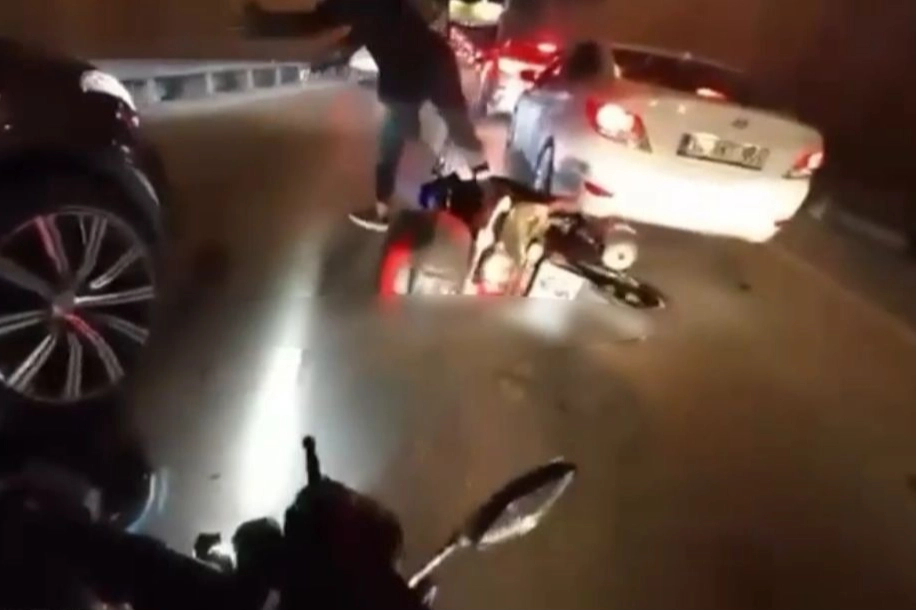Kaza, merkez Osmangazi ilçesi, Merinos mevkii İzmir Yolu üzerinde meydana geldi. Motosikletiyle durağan trafikte araçların arasında hızla seyrederken iki otomobilin arasında sıkıştı. Aniden frene basan motosiklet sürücüsüne arkasından gelen bir başka motosikletli hızla çarptı. Kazanın etkisiyle iki sürücü yola savrulurken, araç sahipleri sürücülerin yardımına koştu. Şans eseri kazayı hafif sıyrıklarla atlatılan kaza anı kameraya anbean yansıdı.