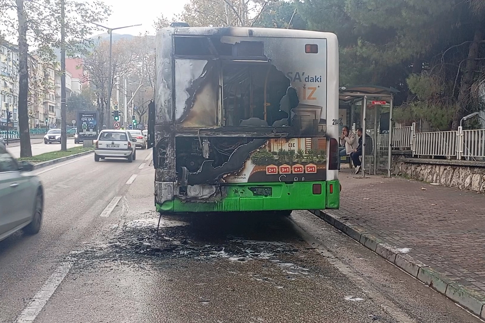 Olay, Osmangazi ilçesi Stadyum Caddesi'nde, Kültürpark Millet Bahçesi yanındaki durakta meydana geldi. 8-D hattı otobüsü, yolcu almak için durduğu esnada, arka bölümündeki motor kısmından dumanlar yükselmeye başladı. Motor kısmından çıkan yangını fark eden şoför, hızlı bir şekilde otobüsteki yolcuları tahliye etti. Olay yerine ihbar üzerine itfaiye ekipleri sevk edildi. Alevlere kısa sürede müdahale eden ekipler, alevleri büyümeden kontrol altına aldı. Yangında herhangi bir yaralanma yaşanmazken, otobüste maddi hasar meydana geldi. Olayla ilgili tahkikat devam ediyor.