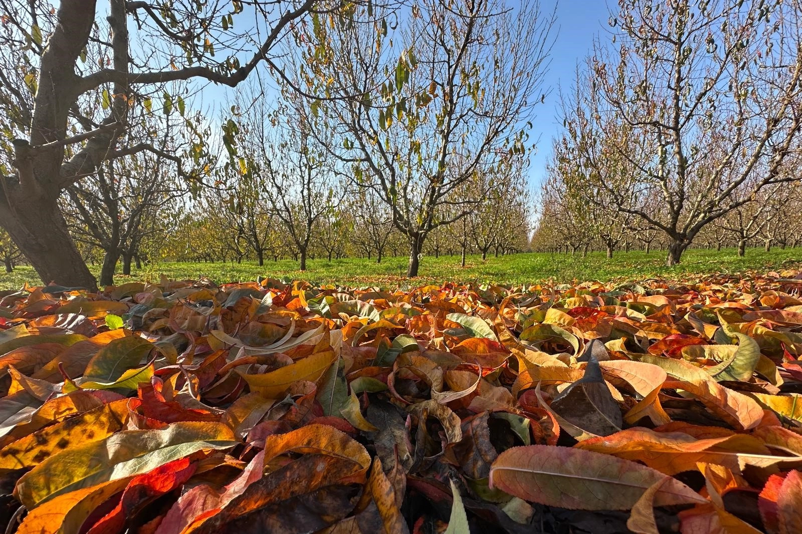 TÜİK'in "Bitkisel Üretim 2. Tahmini"ne göre, meyveler, içecek ve baharat bitkilerinde üretim miktarının 2025 yılında 2024'e göre 30,4 azalarak yaklaşık 19,8 milyon tona düşmesi bekleniyor. Bir önceki yıla göre elma üretiminin yüzde 48,3, şeftalinin yüzde 46,1, nektarinin yüzde 44,1, kiraz ve vişnenin 70,6, üzümün yüzde 24,5, kayısının yüzde 73, armudun yüzde 32 azalacağı tahmin ediliyor. Armut ve şeftalide önemli üretim merkezlerinden olan Bursa'nın Gürsu ilçesinde de zirai don ve kuraklık nedeniyle şeftali rekoltesinin 15 bin ton, santa maria cinsi armudun ise 45 bin tona düştüğü öngörülüyor. Tarım ve Orman Bakanlığına göre son 30 yılın en düşük sıcaklığının oluştuğu zirai don ve ardından gelen kuraklık nedeniyle çok zor bir sezonu geride bırakan meyve ağaçları, yorgunluğunu atmaya dinlenmeye çalışıyor. Yazarlar ve şairlerin hasat mevsimi olan sonbaharda, hasattan yorgun çıkan ve yapraklarını döken meyve ağaçları, ilkbaharda tekrar çiçek açana kadar yaşadıkları soğuk stresi ve oluşan yaraları iyileştirecek. Gürsu'da da bahçeler sonbahar renklerine büründü ve birçok ağaçta yaprak bile kalmadı. Armut ve şeftali ağaçlarından dökülen rengarenk yapraklarla bahçelerin zeminleri, bir ressamın doğayı resmettiği tuvali andırdı. Bahçeler drone ile havadan görüntülendi.