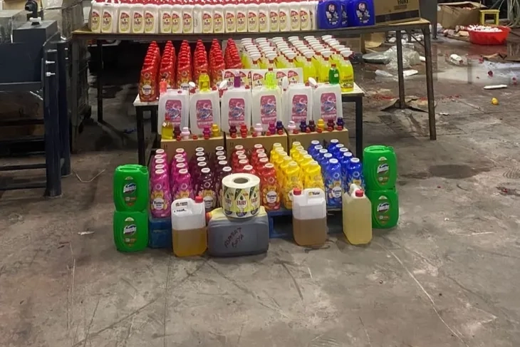 Çalışmalar kapsamında depo görünümlü bir iş yerinde sahte temizlik ürünlerinin bulunduğu belirlendi.