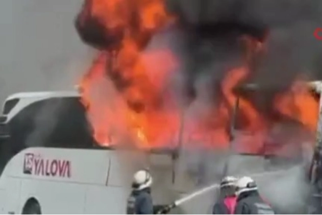 Bursa-Yalova karayolunda seyir halindeki yolcu otobüsü motor kısmından çıkan yangın sonucu alevlere teslim oldu. Yolcuların zamanında tahliye edilmesi muhtemel bir facianın önüne geçti.