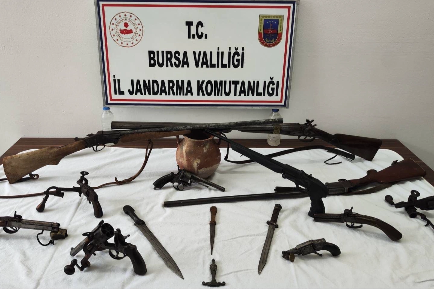 Operasyonda, tarihi eser niteliğinde olduğu değerlendirilen 7 tabanca, 4 tüfek, 1 mühür, 1 küp, 1 obje, 3 hançer ile 3 tüfek aparatı ve 1 barut doldurma aparatı ele geçirildi.
