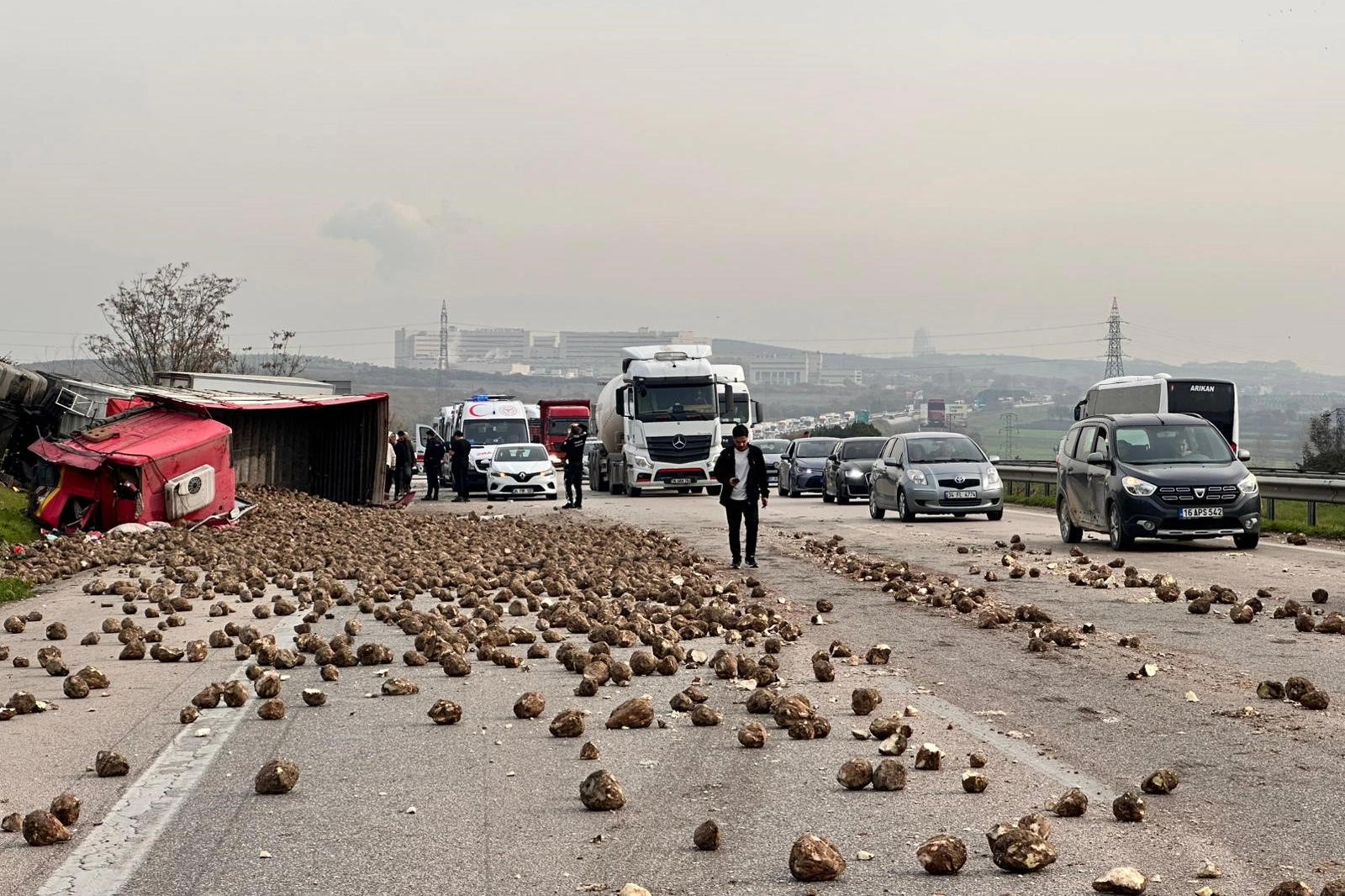 Kaza, saat 11.30 sıralarında İstanbul-İzmir Otobanı, Hal Kavşağı mevkiinde meydana geldi. Edinilen bilgiye göre, şeker pancarı yüklü tır, sürücüsünün kontrolünden çıkıp önce hafif ticari araca, sonra kamyonete çarptı. Savrulan araçlar refüje girerken, tır yola devrildi. Kazayı gören çevredekiler yaralıların yardımına koşarken, 112 ekiplerine bilgi verildi. İhbar üzerine olay yerine çok sayıda polis ve sağlık ekibi sevk edildi. Sağlık ekiplerince ilk müdahalesi olay yerinde yapılan 1'i ağır 5 yaralı ambulansla bölgedeki hastanelere sevk edildi. Şeker pancarlarının yola savrulması nedeniyle, trafik ekipleri bölgede başka kazaların yaşanmaması için tedbir aldı. Kazayla ilgili soruşturma devam ediyor.