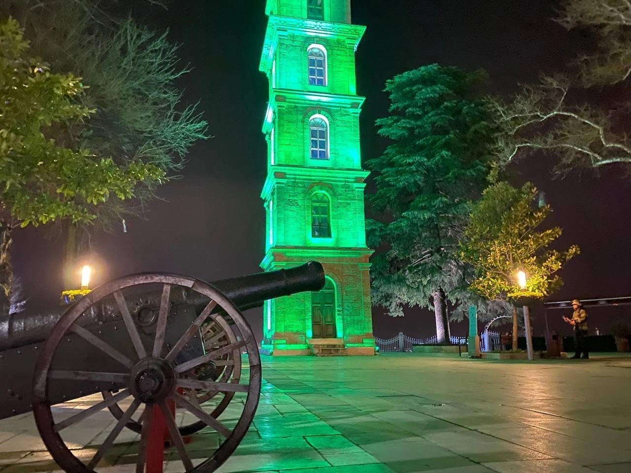 Bursa Büyükşehir Belediyesi İtfaiye Daire Başkanlığı'ndan görevli itfaiyeciler, iftar ve sahur saatlerinde camilerden yükselen ezan sesleriyle beraber Tophane'den ses bombasının fitilini ateşliyor.