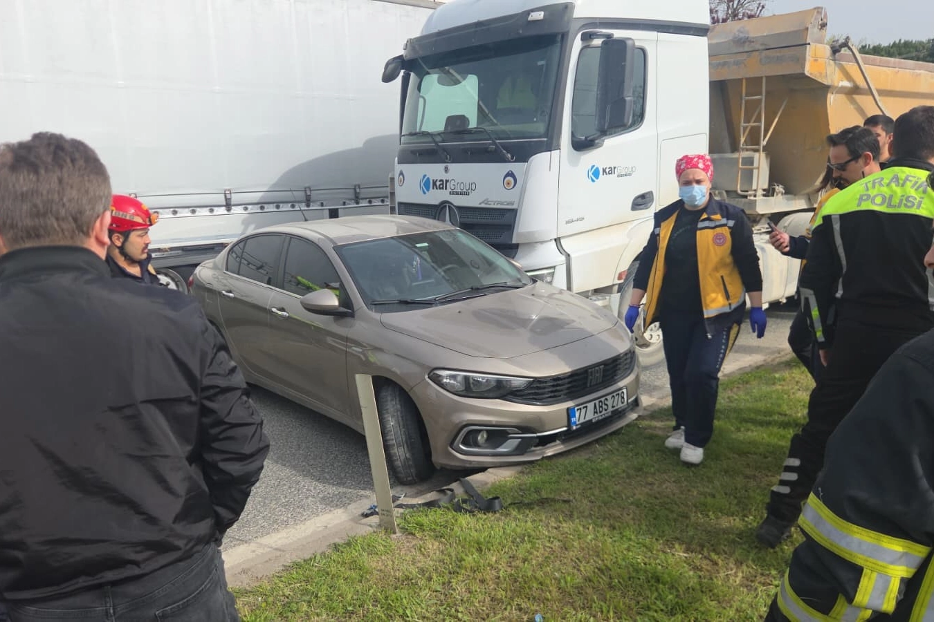 Kaza, saat 10.00 sıralarında Yalova-Bursa kara yolu Orhangazi Yeniköy Kavşağı yakınlarında meydana geldi. Edinilen bilgiye göre, Yalova'dan Orhangazi istikametine doğru gitmekte olan bir hafriyat kamyonu önündeki otomobile çarptı. Kamyon, otomobili yaklaşık 50 metre sürükledikten sonra durabildi. Kazada araçta bulunan 4 kişilik aile büyük şok yaşadı. Kaza nedeniyle kara yolunda trafik tek şeritten sağlandı. Polis ekiplerinin kazayla alakalı tahkikatı devam ediyor.