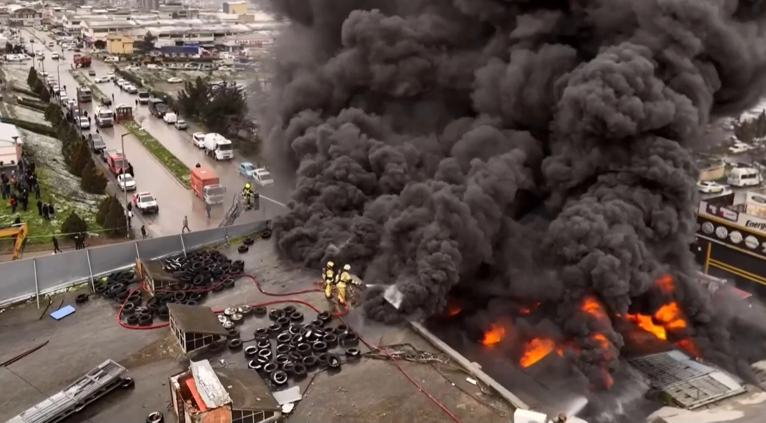Geriye kalan küle dönmüş dükkanlar dron ile görüntülendi.Olayla ilgili tahkikat devam edildi.