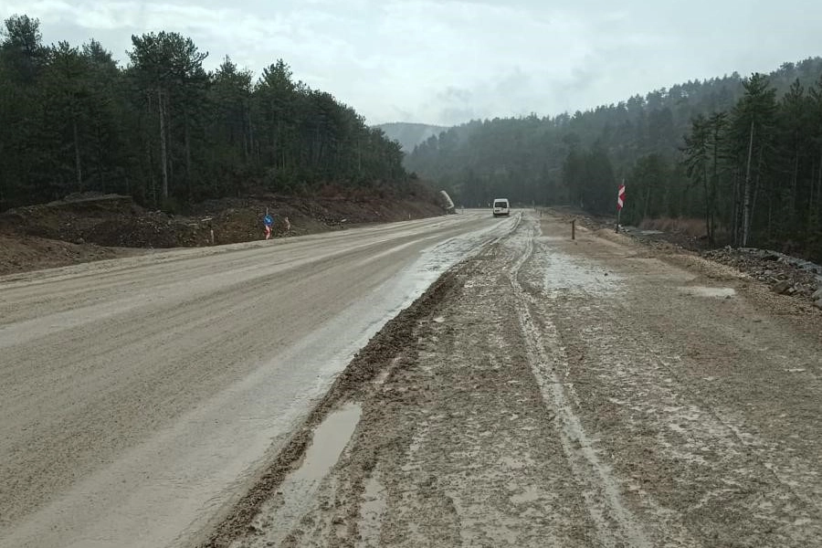 Bursa'da Harmancık-Orhaneli yolu, yol çalışmaları ve sağanak yağışların etkisiyle balçıkla kaplandı. Trafik güvenliğinin risk oluşturduğu yolu kullanmak istemeyen vatandaşlar, kilometrelerce uzaklıktaki alternatif yollara yöneldi.