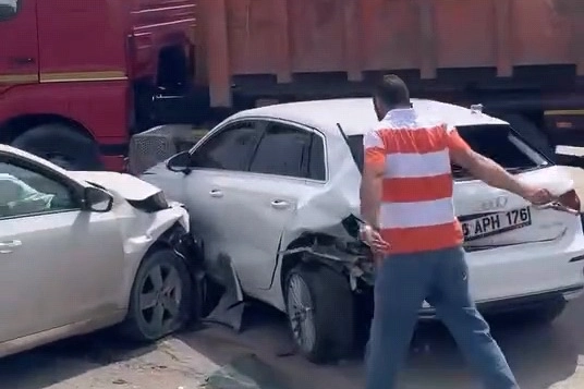Edinilen bilgiye göre, Bursa Ankara karayolu üzerinde Bursa istikametinden İnegöl istikametine seyir halinde olan sürücü Ali K. (55)yönetimindeki 16 AND 955 plakalı otomobil, akaryakıt istasyonundan aniden yola çıkan Hasan M. yönetimindeki 16 APH 176 plakalı araca çarptı. Kaza sonucu direksiyon hakimiyeti kaybolan otomobiller, yolun sağında park halinde olan 16 ALNO38 plakalı kamyona, akabinde yine park halindeki Halil A.(40) yönetimindeki 16 FS 265 plakalı otomobile çarparak durabildi. Kaza sonucu sürücüler Halil A. ve Ali K. ile Havva K.(45), Ömer K.(2), Hasan M.(51) yaralandı. Yaralılar haber verilmesi üzerine olay yerine gelen sağlık ekiplerinin ilk müdahalesinin ardından ambulanslarla İnegöl Devlet Hastanesi Acil Servisine kaldırılarak tedavi altına alındı. Kaza nedeniyle trafiğe kapanan yol, araçların kaldırılmasıyla tekrar trafiğe açılırken, kazayla alakalı soruşturma başlatıldı.
