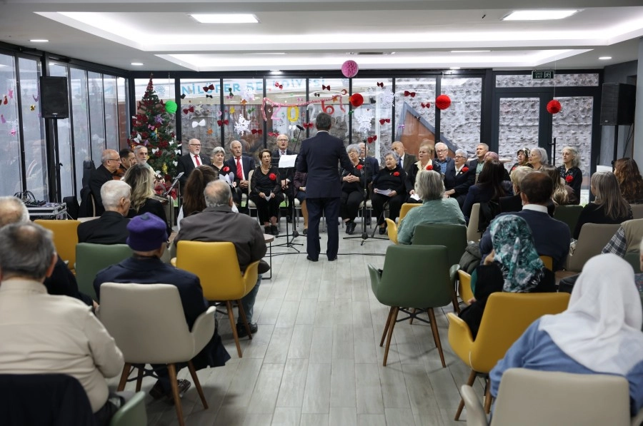 Yeni yıl pastasının kesilmesiyle sona eren etkinlikte huzurevi sakinleri, 2026 yılına moral depolayarak girmenin mutluluğunu yaşadı.