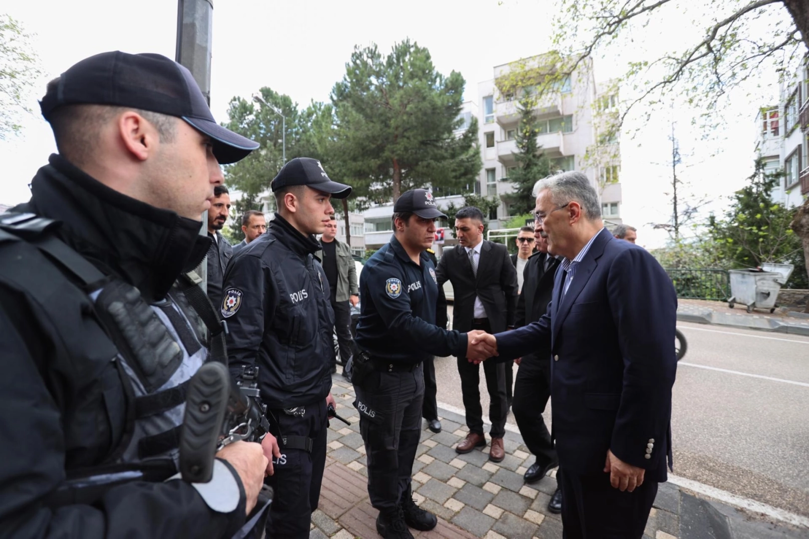Ziyaretlerine Sahil Güvenlik Komutanlığı'nda başlayan Bursa Valisi Erol Ayyıldız, sırasıyla Gemlik İlçe Jandarma Komutanlığı, Engürücük Yol Kontrol Noktası ve Çekirge Polis Merkezi Amirliği'nde görevli personelleri bir bir ziyaret etti. Polis ekipleriyle bayramlaşan Ayyıldız, Bursa Ulu Cami'ye giderek vatandaşlarla da bayramlaştı.