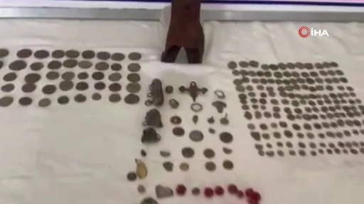 Araçta yapılan aramada, Bizans ve Roma dönemine ait olduğu değerlendirilen toplam 226 adet sikke ile Helenistik döneme ait olduğu değerlendirilen 1 adet minyatür heykel bulundu. Ele geçirilen tarihi eserler muhafaza altına alınırken, olayla ilgili olarak araçta bulunan M.Y. ve H.N. isimli şahıslar gözaltına alındı.Şüpheliler, ifadelerinin alınmasının ardından mevcutlu olarak sevk edildikleri adli mercilerce serbest bırakıldı.