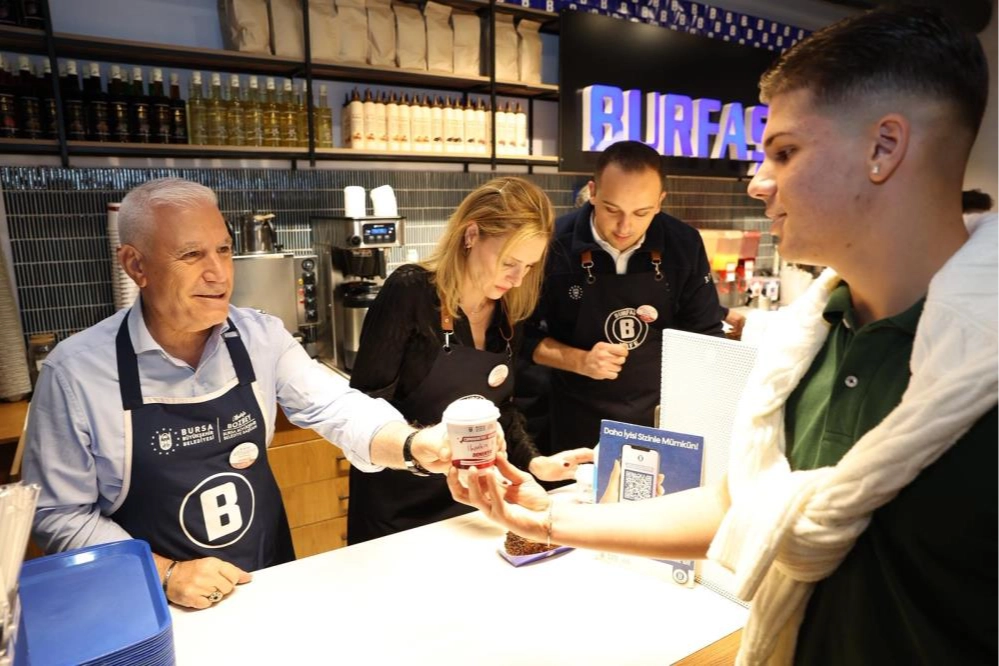 "Cumhuriyet demek, hepimiz demek" Eşi Seden Bozbey ile birlikte barista önlüklerini giyen Başkan Bozbey, Cumhuriyetin 102. yılına özel olarak hazırlanan ‘Cumhuriyet Demek’ temalı bardaklarda içecek ikramında bulundu. Vatandaşların isimlerini ‘Cumhuriyet demek' temalı bardaklara yazan Başkan Mustafa Bozbey ve eşi Seden Bozbey, Atatürk’ün emanet ettiği Cumhuriyet’in sıcaklığını Bursalılarla birlikte paylaştı. Bu sene kutlamaların teması olan ‘Cumhuriyet demek, hepimiz demek’ sloganını da yazarak ikramda bulunan Başkan Bozbey ve eşi Seden Bozbey, kahve keyfini vatandaşlarla birlikte yaşadı.