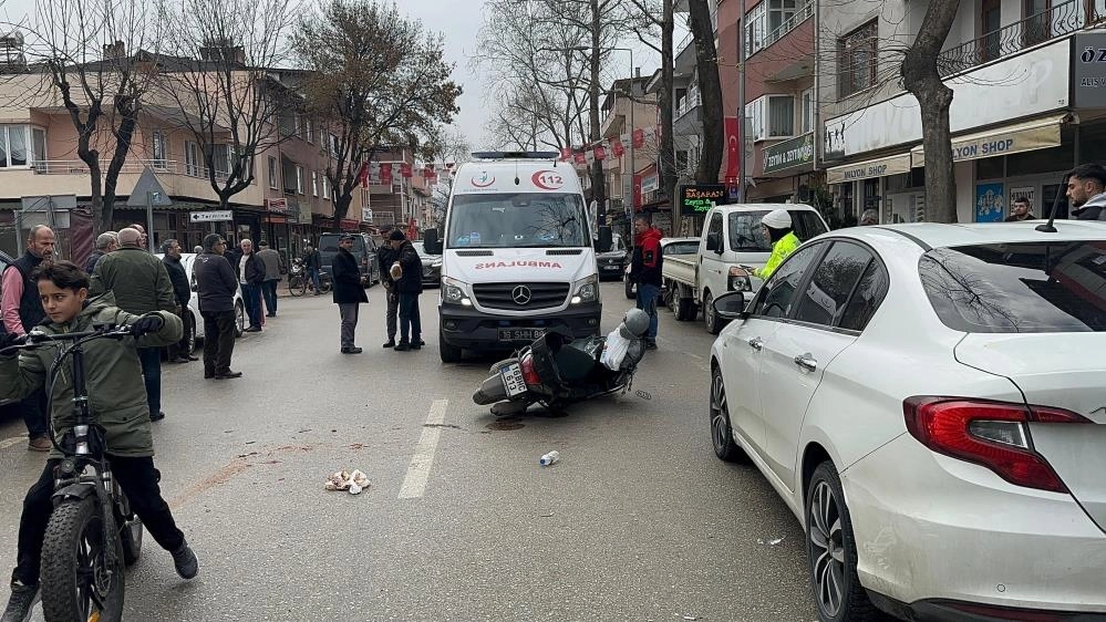 Direksiyon hakimiyetini kaybeden motosikletli yere düştü