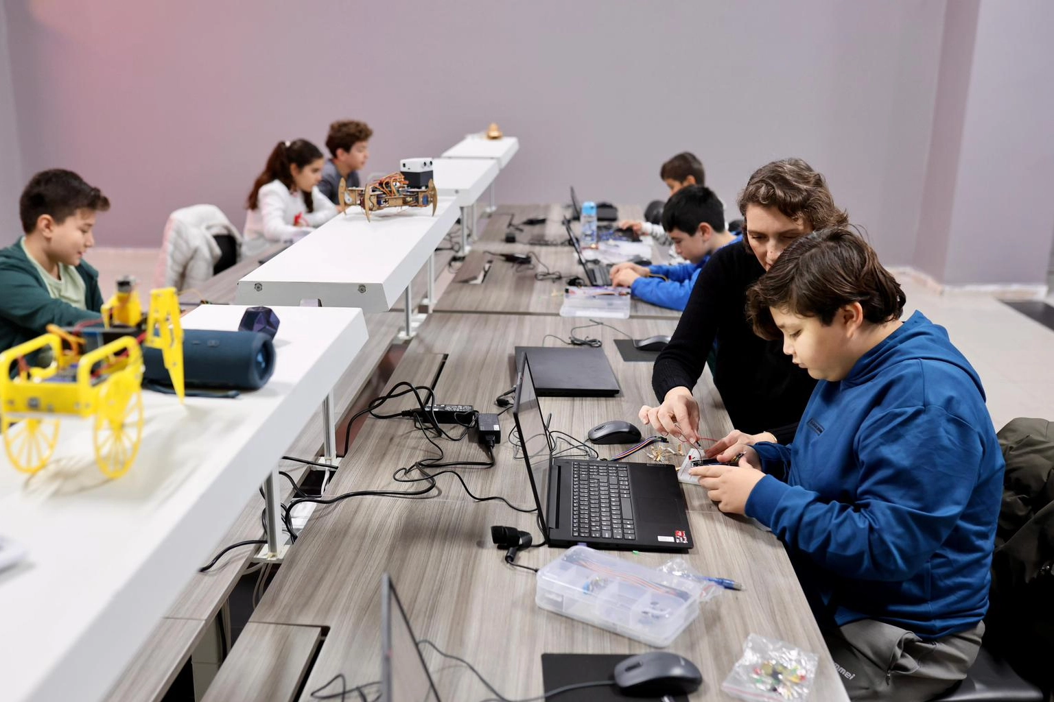 Atölyede dersler uygulamalı olarak yürütülüyor. Çocuklar, sensörler, motorlar, devre elemanları ve kodlama platformlarıyla birebir çalışarak kendi projelerini oluşturuyor. Böylece yalnızca teorik bilgi edinmekle kalmayıp, gerçek hayatta karşılığı olan ürünler geliştirme fırsatı buluyorlar. Eğitimlerde takım çalışması, yaratıcılık ve problem çözme gibi beceriler de ön plana çıkarılıyor.