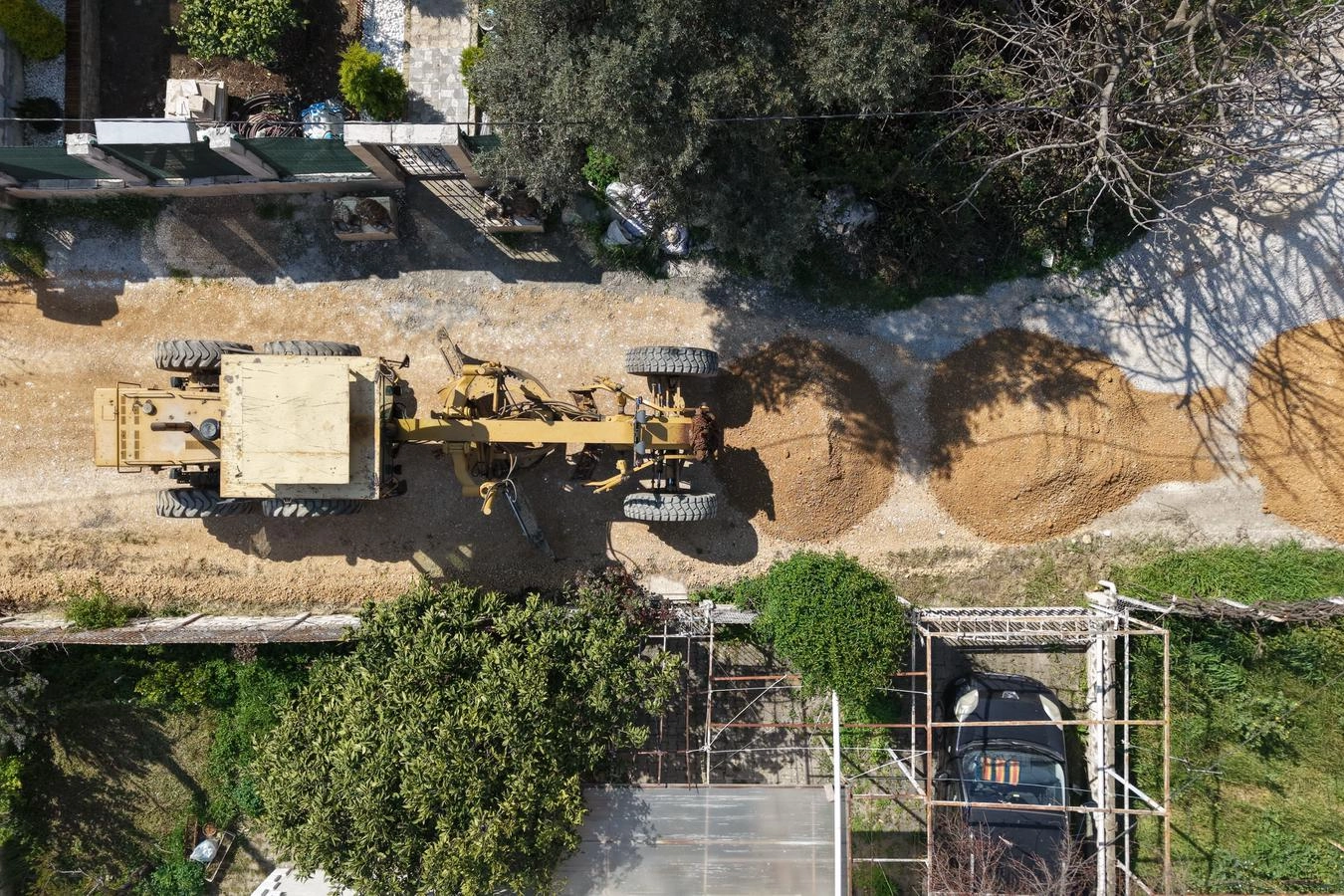 Yapılan çalışma kapsamında, yolun daha kullanışlı ve konforlu hale getirilmesi amacıyla stabilize dolgu malzemesi serimi gerçekleştirildi. Kahverengi stabilize malzeme ile yapılan düzenleme sayesinde, yol yüzeyi daha düzgün ve dayanıklı bir yapıya kavuşturuldu.