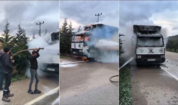 Olay, Bursa’nın İznik ilçesi Boyalıca Mahallesi’nde akşam saatlerinde meydana geldi. 35 AE 5770 plakalı kamyonet seyir halindeyken bilinmeyen bir nedenle alev aldı. Sürücü alevleri fark edince kamyoneti kenara çekerek mahalle muhtarına durumu bildirdi. Boyalıca Mahalle Muhtarı Sercan Uzun, Bursa Büyükşehir Belediyesi’nin mahalleye tahsis ettiği itfaiye aracını alarak kısa süre içerisinde olay yerine geldi. Muhtar Uzun’un çalışmasıyla yangın söndürüldü.