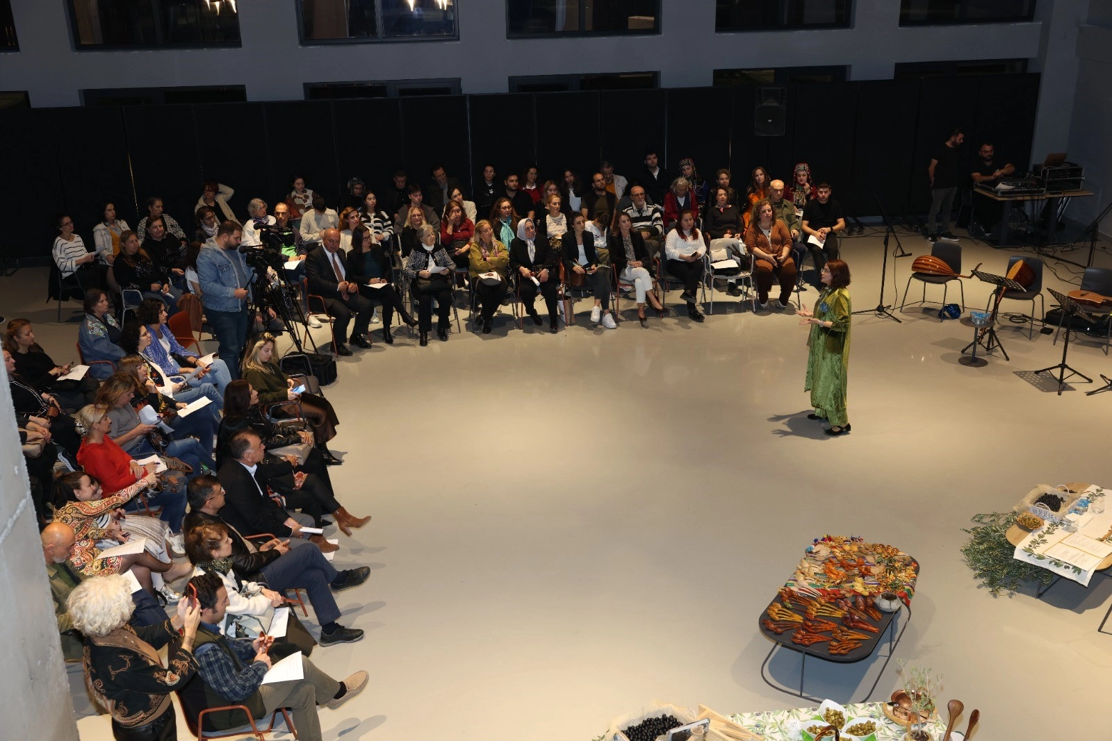 Programda "Anadolu’da Kaşığın Arkeolojisi" başlıklı bir sunum gerçekleştiren Nur Başnur, kaşığın sadece bir mutfak gereci olmadığını, aynı zamanda derin bir kültürel birikimi temsil ettiğini vurguladı. Başnur, kaşığın Türk ve dünya tarihindeki kullanım alanlarını, gelişim sürecini, dini ve kültürel sembollerini katılımcılarla paylaştı. Kaşığın sofradaki yerinden halk kültüründeki yansımalarına kadar pek çok detay, izleyiciler tarafından ilgiyle dinlendi. Sohbetin müzikle renklendiği gecede, anlatılan hikayelere özel lezzetler eşlik etti. Katılımcılar; Gemlik, Tirilye, Manisa ve Artvin gibi Türkiye’nin önemli zeytin merkezlerinden gelen yerel lezzetlerin yanı sıra, Yunanistan zeytinlerini de tatma fırsatı buldu. Tadım menüsünde dünya mutfağından seçkiler de yer aldı. İtalya’nın meşhur ekmeği Focaccia ve Fransa mutfağının zeytin ezmeli lezzeti Tapenad, katılımcıların beğenisine sunuldu. Tüm bu lezzetler, Prof. Dr. Özlem Doğuş Varlı’nın seçtiği ve hikayeyle bütünleşen şarkı eşleşmeleriyle servis edildi. Geleneksel Kaşık Helvası ikramıyla ağızların tatlandığı gecenin finali Prof. Dr. Özlem Doğuş Varlı’nın geceye özel bestelediği "Zeytinden Kaşık Ben Sana Aşık" isimli şarkısı yapıldı.