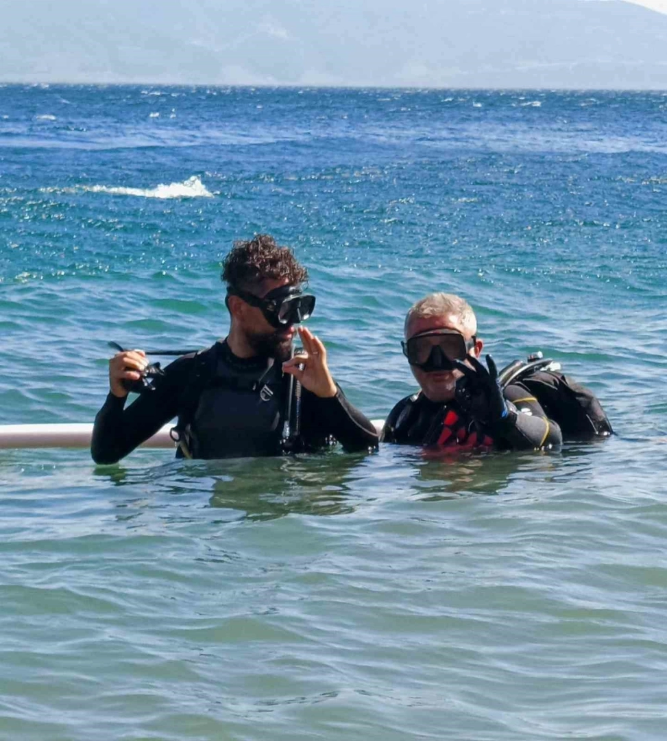 2 farklı hocadan ders alan ünlü isim Güney Marmara'nın serin sularında dalış gerçekleştiriyor.Müzik kariyerine yepyeni bir soluk getirmeye hazırlanan Mehmet Çevik, yeni klibini Marmara Denizi'nin derinliklerinde çekecek! Bu sıra dışı projeye hazırlanmak için Güney Marmara'da iki farklı eğitmenden dalış dersleri alan ünlü sanatçı, Dalış kıyafetlerini giyip oksijen tüpünü takarak saatlerce Marmara'nın serin sularında gözden kaybolup zaman geçiriyor.