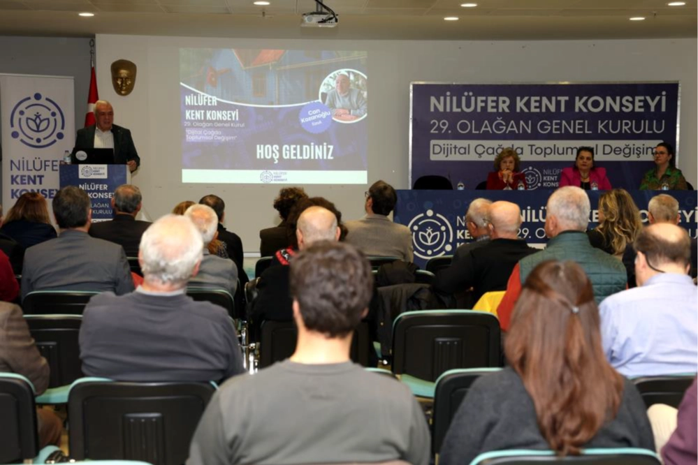 Nilüfer Kent Konseyi'nin 29'uncu Olağan Genel Kurulu'nda "Dijital Çağda Toplumsal Değişim" masaya yatırıldı. Nilüfer Belediye Başkanı Şadi Özdemir, vatandaşların hayatını kolaylaştırmak, katılımı artırmak ve demokrasiyi güçlendirmek için dijital projeler gerçekleştirdiklerini belirterek, "Herkesin sesinin yansıdığı bir Nilüfer istiyoruz" dedi. Nilüfer Kent Konseyi'nin 29'uncu Olağan Genel Kurulu, Bursa Akademik Odalar Birliği'nde (BAOB) yapıldı. Genel Kurul Divanı, Prof. Dr. Ebru Yalçın, Yasemin Nacar ve Avukat Bilgen Şentürk'ten oluştu. Saygı duruşu ve İstiklal Marşı'nın okunmasının ardından konuşmalara geçildi.