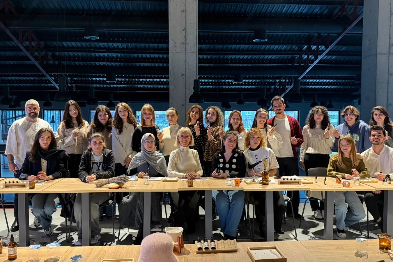Nilüfer Belediyesi tarafından Pancar Deposu’nda düzenlenen "Aromaterapi Doğal Parfüm Atölyesi", Aromaterapi Uzmanı Ebru Şahin’in yürütücülüğünde gerçekleştirildi. Atölyede, koku duyusu sadece fiziksel bir his olarak değil, biyolojik ve tarihi bir süreç olarak ele alındı. Etkinlikte; kimyasal duyulara giriş, tat ve koku duyusu arasındaki ilişki, koku belleği, parfümün tarihi gelişimi, aromaterapi ve uçucu yağların etkileri gibi konular detaylıca konuşuldu. Nilüfer Belediye Başkan Yardımcısı Okan Şahin de atölyeyi ziyaret ederek katılımcıların çalışmalarını inceledi. DUYGU, BELLEK VE KOKU ARASINDAKİ İLİŞKİ Atölye yürütücüsü Ebru Şahin, tat ve koku duyularının genellikle birbiriyle uyum içinde çalıştığını belirtti. Tat duyusunun tatlı, tuzlu, acı, ekşi ve umami olmak üzere beş temel kulvardan oluştuğunu ifade eden Şahin, koku duyusunun duygu durumları üzerindeki etkisine dikkat çekti. Kokuların beyindeki işleyişine dair bilgiler veren Şahin, şunları söyledi: "Limbik sistem, koku uyaranlarının doğrudan işlendiği bölgedir. Bu bölge aynı zamanda uzun süreli bellek, aşk, sevgi, nefret, öfke ve korku gibi duyguları yönlendirir. Dolayısıyla duygu, bellek ve koku arasında çok yakın bir komşuluk ilişkisinden bahsedilebilir." KENDİ PARFÜMLERİNİ TASARLADILAR Teorik bilgilendirmelerin ardından atölyenin uygulama kısmına geçildi. Katılımcılar, farklı özlere sahip kokuları tek tek deneyimleyerek içerikleri hakkında bilgi altı. Etkinliğin sonunda katılımcılar, Ebru Şahin eşliğinde öğrendikleri teknikleri kullanarak kendi doğal parfümlerini tasarlama fırsatı buldu.