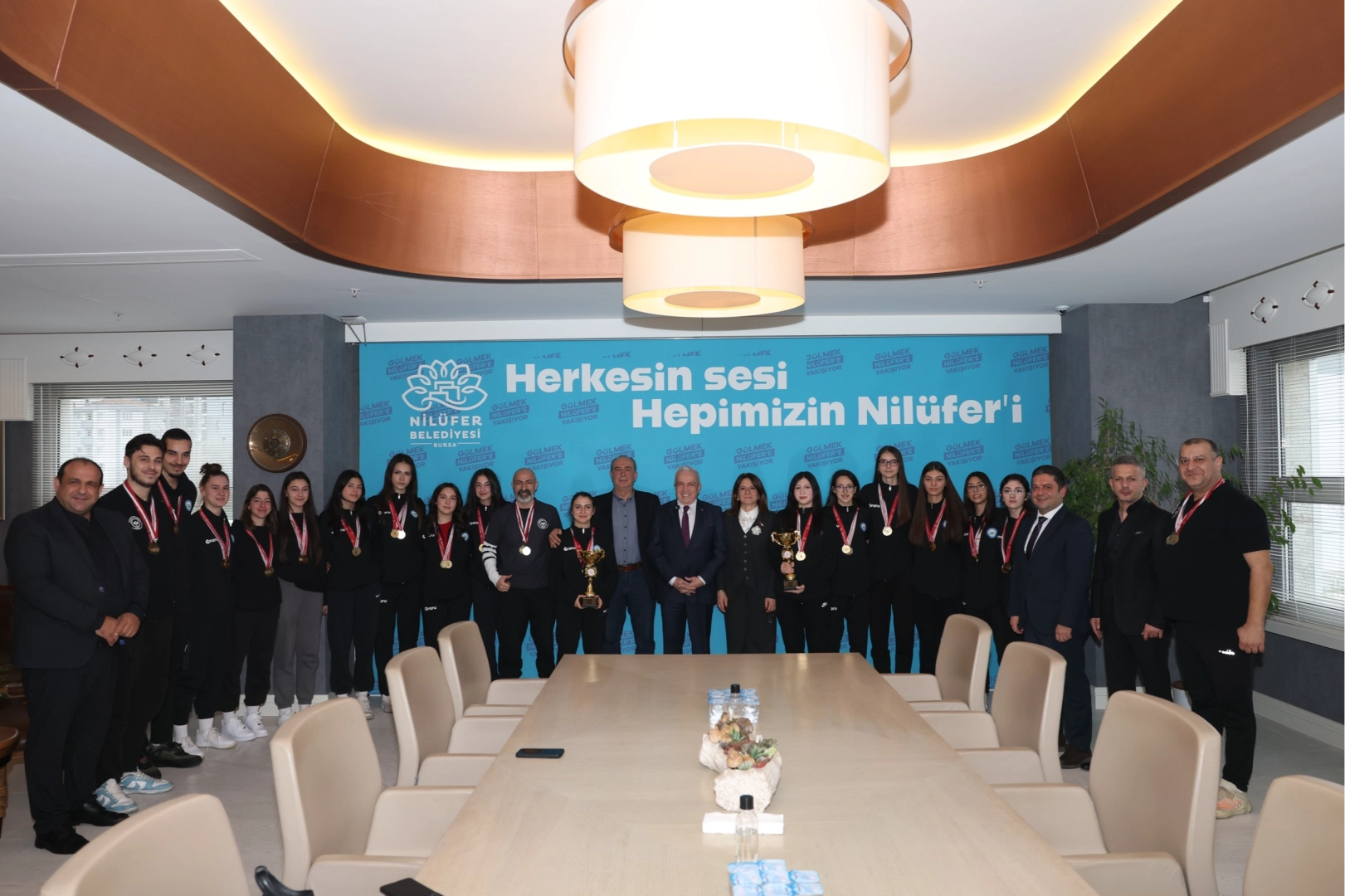 Nilüfer Belediyesi Halk Evi’ndeki başkanlık makamında gerçekleşen ziyarete; Nilüfer Belediyespor Kulübü As Başkanı Mehmet İlker Şener, kulüp yöneticileri, teknik ekip ve şampiyon sporcular katıldı.