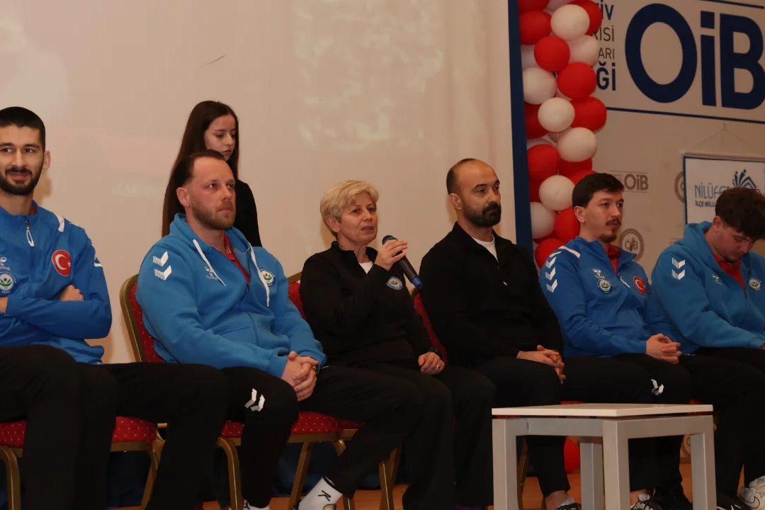 Nilüfer Belediyespor Erkek Hentbol Takımı, Otomotiv Endüstrisi İhracatçıları Birliği (OİB) Mesleki ve Teknik Anadolu Lisesi'nin "Hoba Yeşil Koltuk" programında ayın konuğuydu. Etkinliğin açılışında konuşan Okul Müdür Yardımcısı Mustafa İnan, sporcuların gençler için rol model olduğunu ve buluşmaların motivasyonlarını olumlu etkilediğini söyledi.
